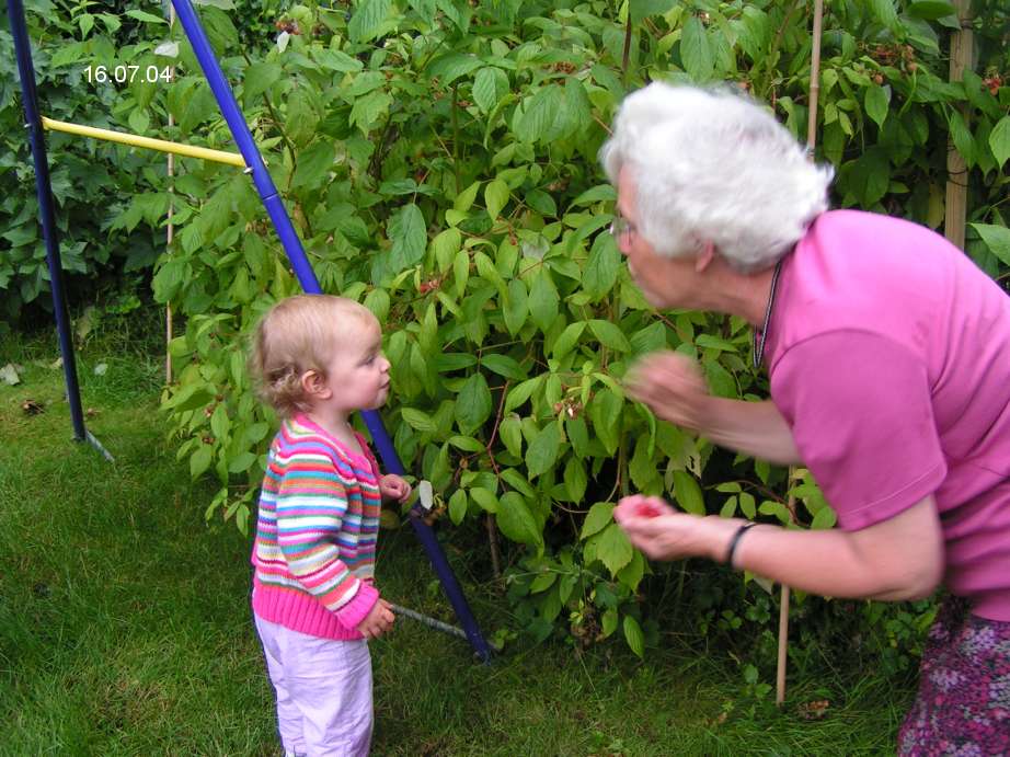 and Jean picking rasberries in the garden at Highgate