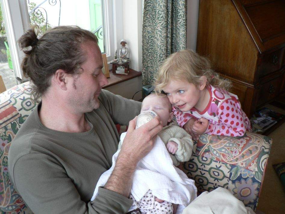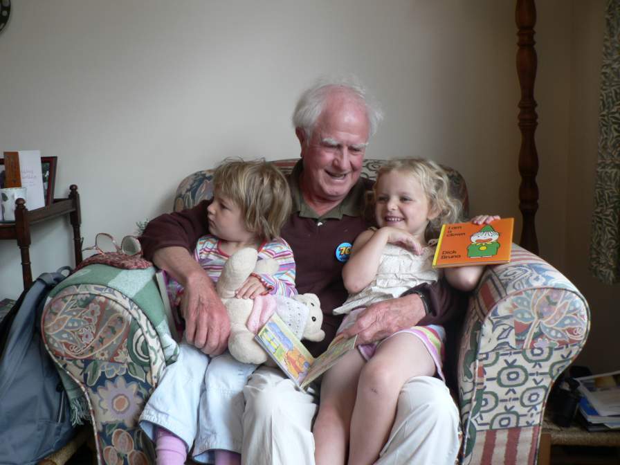 Karen reads to Lisa and Nell, with Reggie watching - 29.12.06