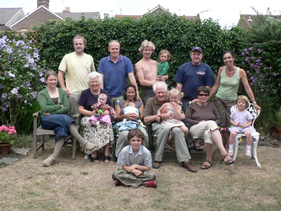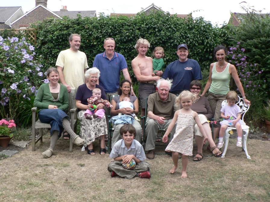Family group photo (with Nell prominent) in the garden at Emsworth - 12.08.06