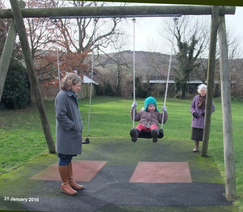 on the big girl's swing"